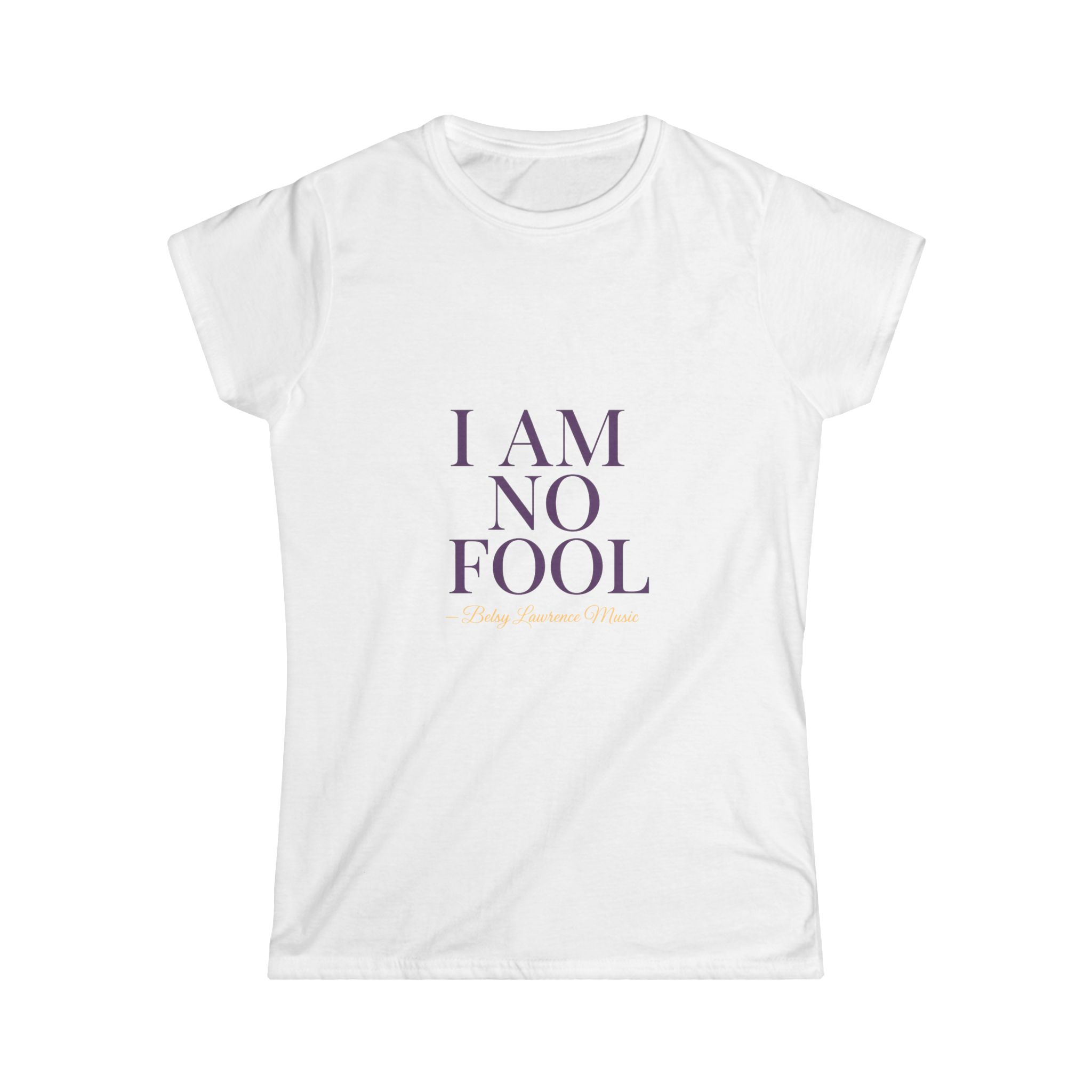 This Tee features the phrase ‘I AM NO FOOL’ from Betsy Lawrence’s song, perfect for women who appreciate music-inspired fashion. Ideal for casual wear, music lovers, and fans of expressive clothing. Great for concerts, music festivals, and everyday wear. Relevant for fans of Betsy Lawrence’s music. Suitable for Valentine’s Day, music events, and everyday wear.